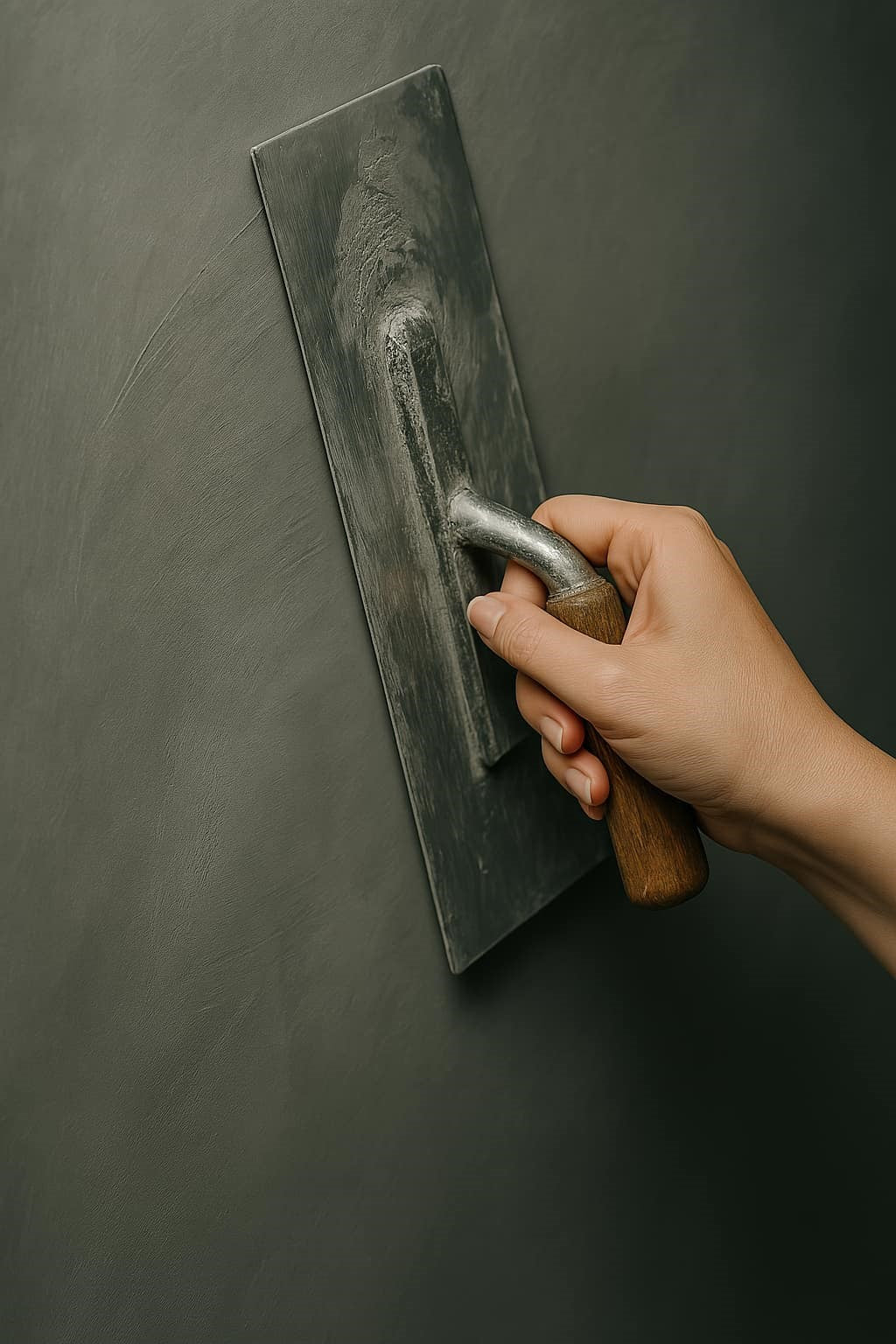 Travaillé en multiples passes à la truelle, le stuc vénitien crée une surface vibrante, presque sculptée, où chaque coup révèle la main de l'artisan et compose un effet chargé, profond et texturé.