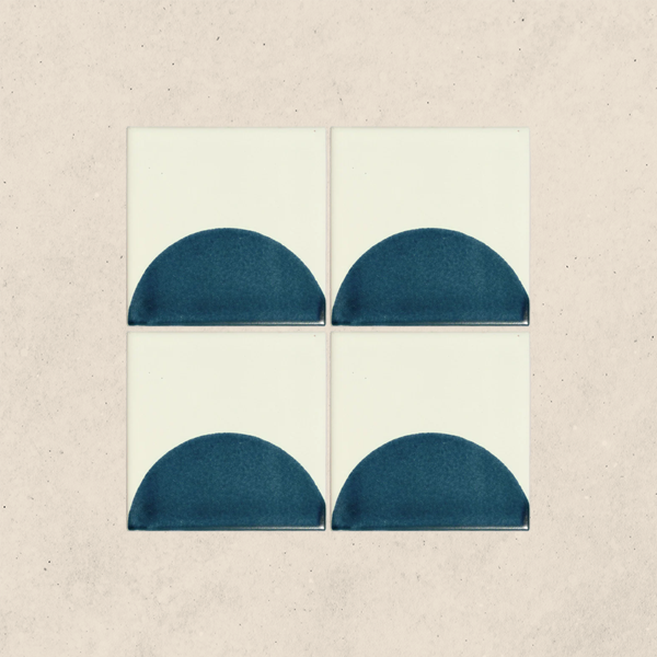 Carreau d'argile à demi-cercle bleu 4" X 4", 100% naturelle, pour carrelage - Modrio